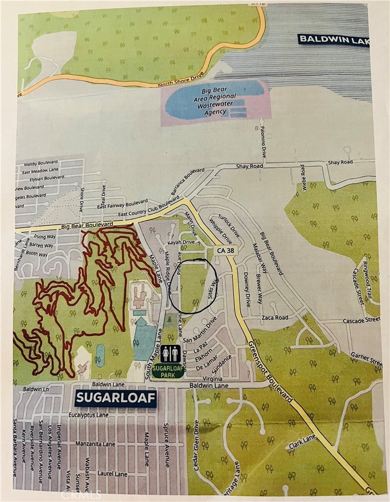There is a major sense of community spirit in the area as the land is tucked among 2 established neighborhoods (Maple Ridge and Meadowbrook Estates), is near the close-knit Sugarloaf residences and within walking distance is Big Bear High School and Baldwin Lane Elementary School. It sits on a hilltop and showcases its natural beauty and mountain views and is located near year-round activities via the ski resorts, Big Bear Lake, The Village's boutique shops & restaurants, Alpine Zoo and a spectacular 9-hole golf course.