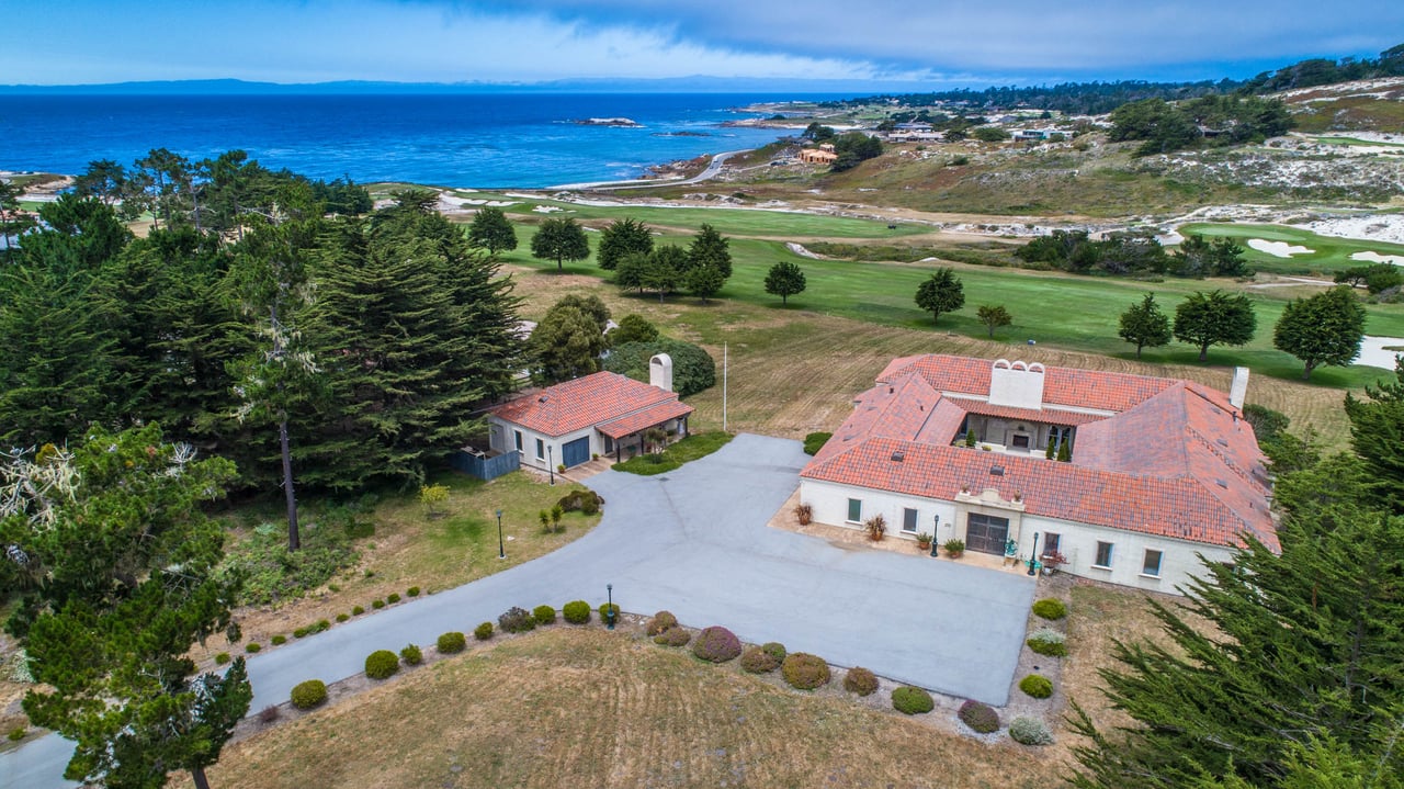 Cypress Point Mediterranean Estate is a warm, single-level residence in the heart of Pebble Beach. It is ideally positioned along the second fairway of the Cypress Point Club golf course. It blends comfort with a quiet sense of luxury. The main residence offers three spacious ensuite bedrooms, along with a private guest house that’s perfect for hosting family or friends while still maintaining a sense of separation. Inside, the home feels both relaxed and refined, with inviting living spaces, a cozy library, and both casual and formal dining areas that make it easy to gather or unwind at your own pace. At the center of it all, a beautiful open-air limestone courtyard with a fireplace creates a natural place to relax and enjoy the indoor-outdoor lifestyle, while the surrounding outdoor seating and manicured front lawn add to the peaceful setting. It’s a home that feels easy to settle into, yet special enough to remember.