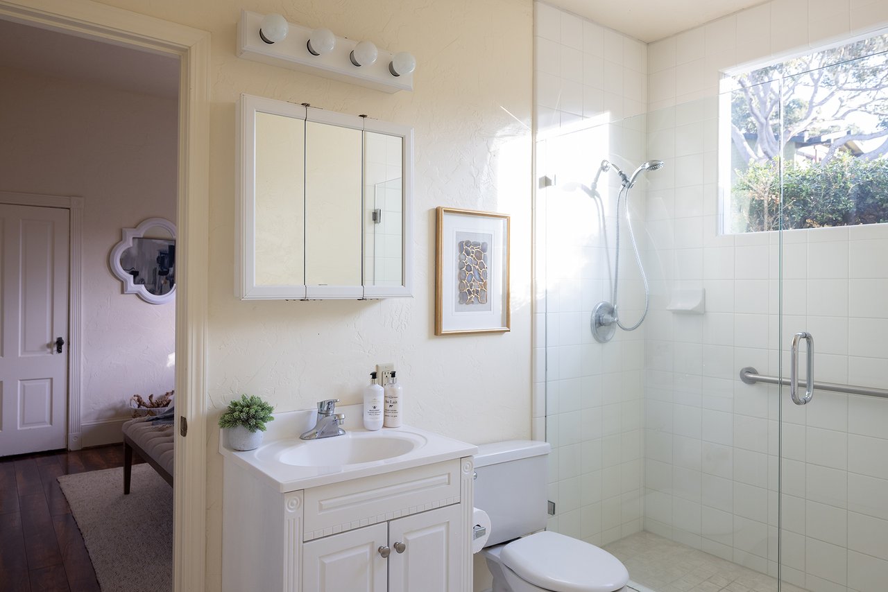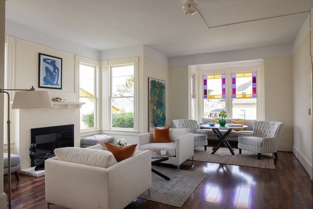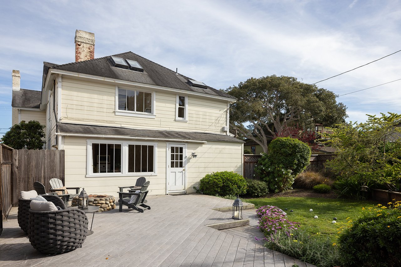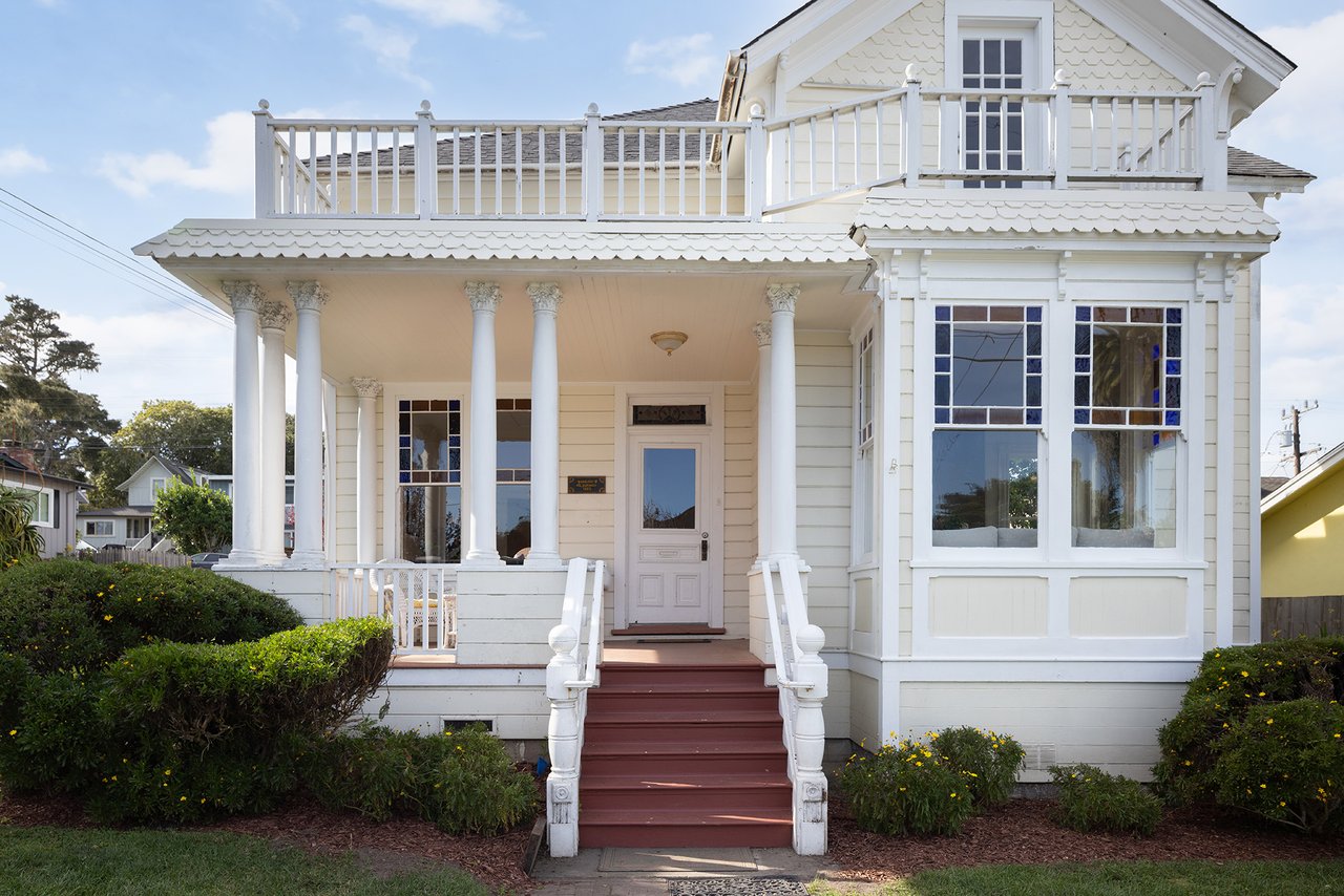 A timeless expression of Pacific Grove’s architectural heritage, this classic Victorian residence is sited on a 7,200 sq ft street-to-street lot just steps from town and the sea. Built in 1893 and spanning ~2,860 sq ft, the interior is warm, inviting, and rich in detail, with intricate crown molding, stained glass windows, skylights, and wood accents throughout. The main level is comprised of a spacious living room with a cozy fireplace, a light-filled kitchen, a formal dining room, and a bedroom, office, and full bath. Upstairs, 4 bedrooms, a bathroom, and a sitting area offer ample space for family or guests, with one bedroom enjoying a balcony with peeks of the ocean. Outside, the front yard welcomes you with a charming covered front porch, white picket fence, and gardens. A spacious backyard features a patio, outdoor fire pit, lush lawn, and beautiful landscaping. Whether entertaining, relaxing by the fire, or strolling to nearby shops, restaurants, and the coastline, the property captures the quintessential Pacific Grove lifestyle. Own a piece of history in one of the Monterey Peninsula’s most beloved coastal communities.
