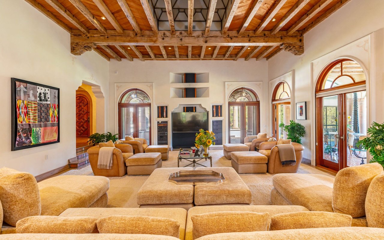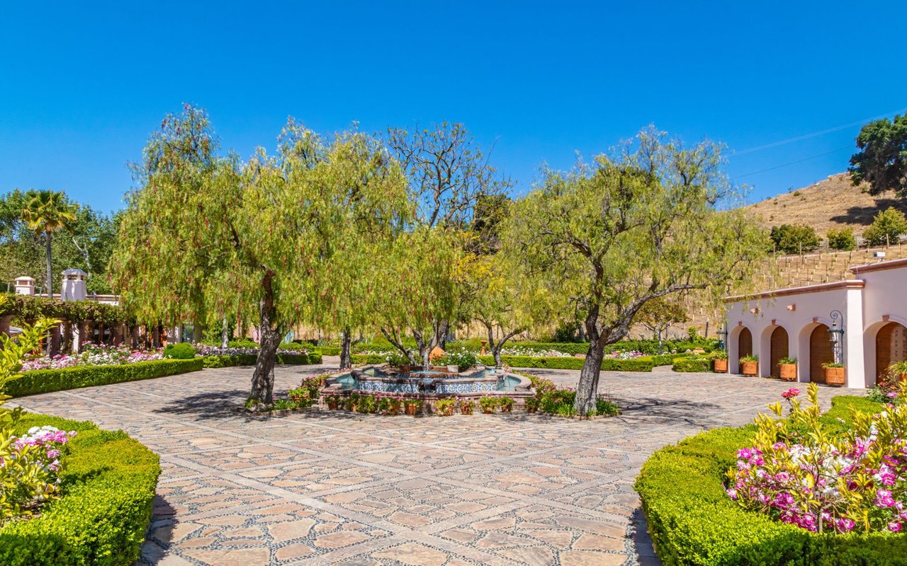 A rare and secluded paradise in the hills of Malibu, 29000 Newton Canyon Road, the Rosenthal Estate, is set on 180 sprawling acres with stunning views of the surrounding vineyards and mountains. Enter the gated property by way of a long, winding stone driveway. The homes expansive grounds feature approx. 600 avocado trees, mature oak forests and curated art installations. With extraordinary space and privacy, the estate includes an equestrian style tasting room, a gym, 2 pools, a residential compound featuring 12, 000 sq ft of living space in the main residence, 3 guest homes and staff quarters. Every feature of the hacienda reveals the spectacular attention to detail, from open wood beamed ceilings to intricate wood columns. This prized location is just five minutes from Malibus beautiful beaches and twenty miles from Santa Monica. With the amenities of resort- style living in an enchanting setting, residents will experience a world all their own, where the possibilities are endless.