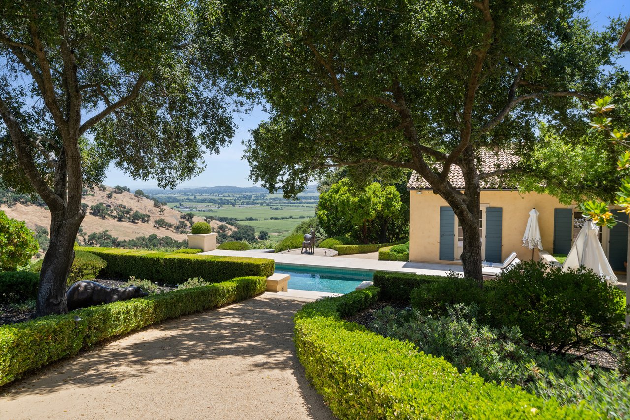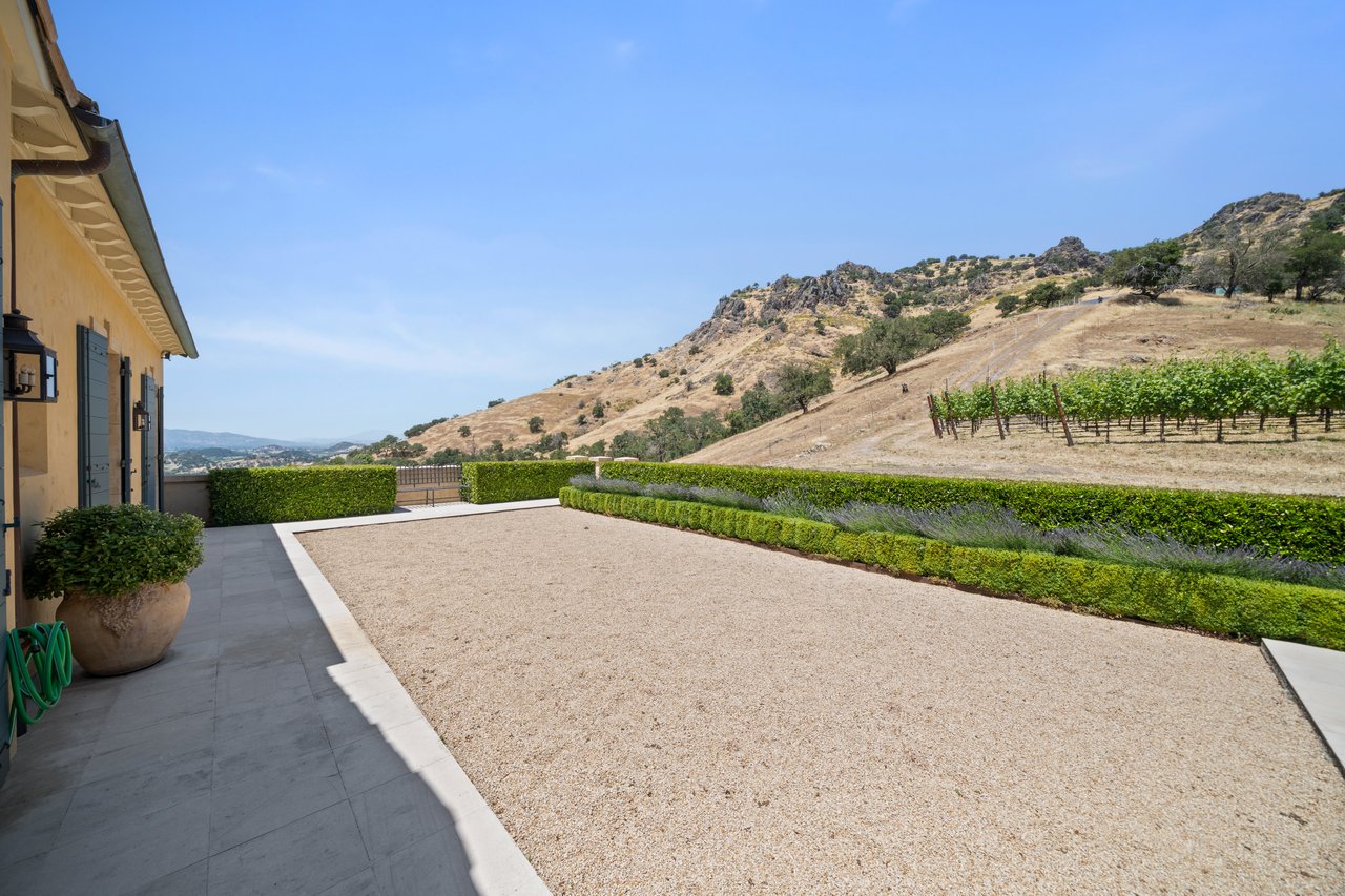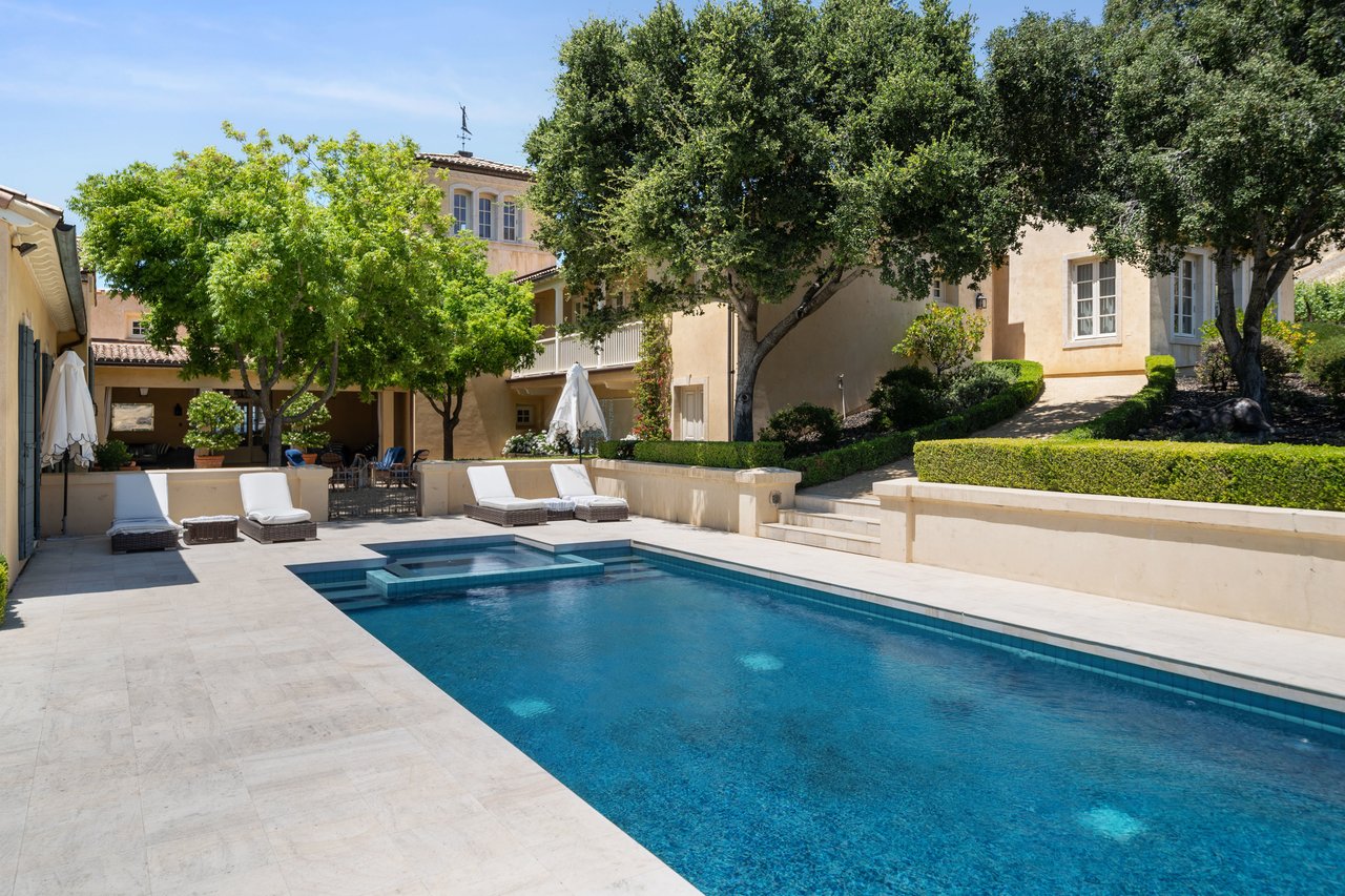 A crown jewel of Napa Valley’s renowned Stags Leap District, 4 Winds Winery is a 110± acre estate blending timeless elegance with modern luxury. Behind private gates along Silverado Trail, the property unfolds across rolling vineyards, manicured gardens, and serene natural beauty. The 8,681± sq ft main residence showcases exquisite craftsmanship, French doors, and light-filled living spaces that flow seamlessly through a library, formal dining room, and a chef’s kitchen designed for gatherings of any scale. The primary suite offers a private terrace, spa-inspired bath, and garden access, while en-suite guest rooms open directly to the pool. A separate 998± sq ft guest cottage and 1,500± sq ft caretaker home provide additional accommodations, complemented by a 1,400± sq ft wine cave ideal for private tastings. Outdoor living features a heated infinity pool with vineyard views, organic gardens, fruit orchards, and scenic trails. Additional amenities include a gym, meditation room, garages, and a curated collection of livestock. Offered fully furnished and turnkey, 4 Winds Winery embodies the ultimate Napa Valley lifestyle where sophistication, authenticity, and tranquility converge.