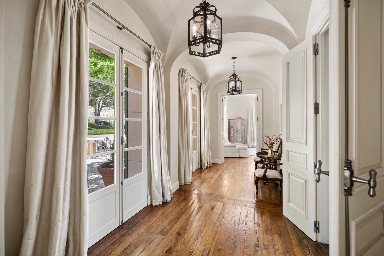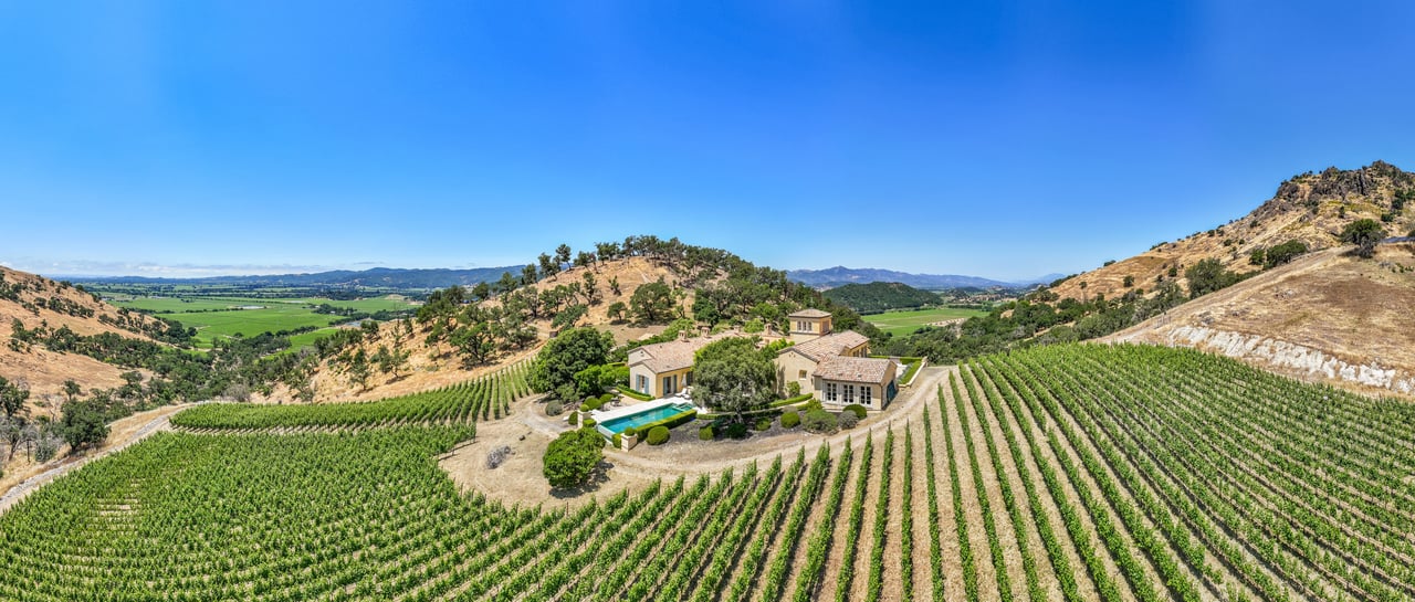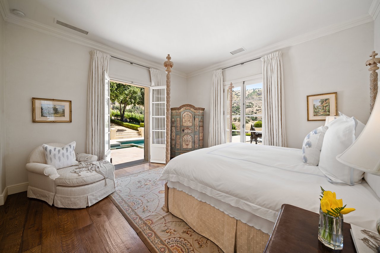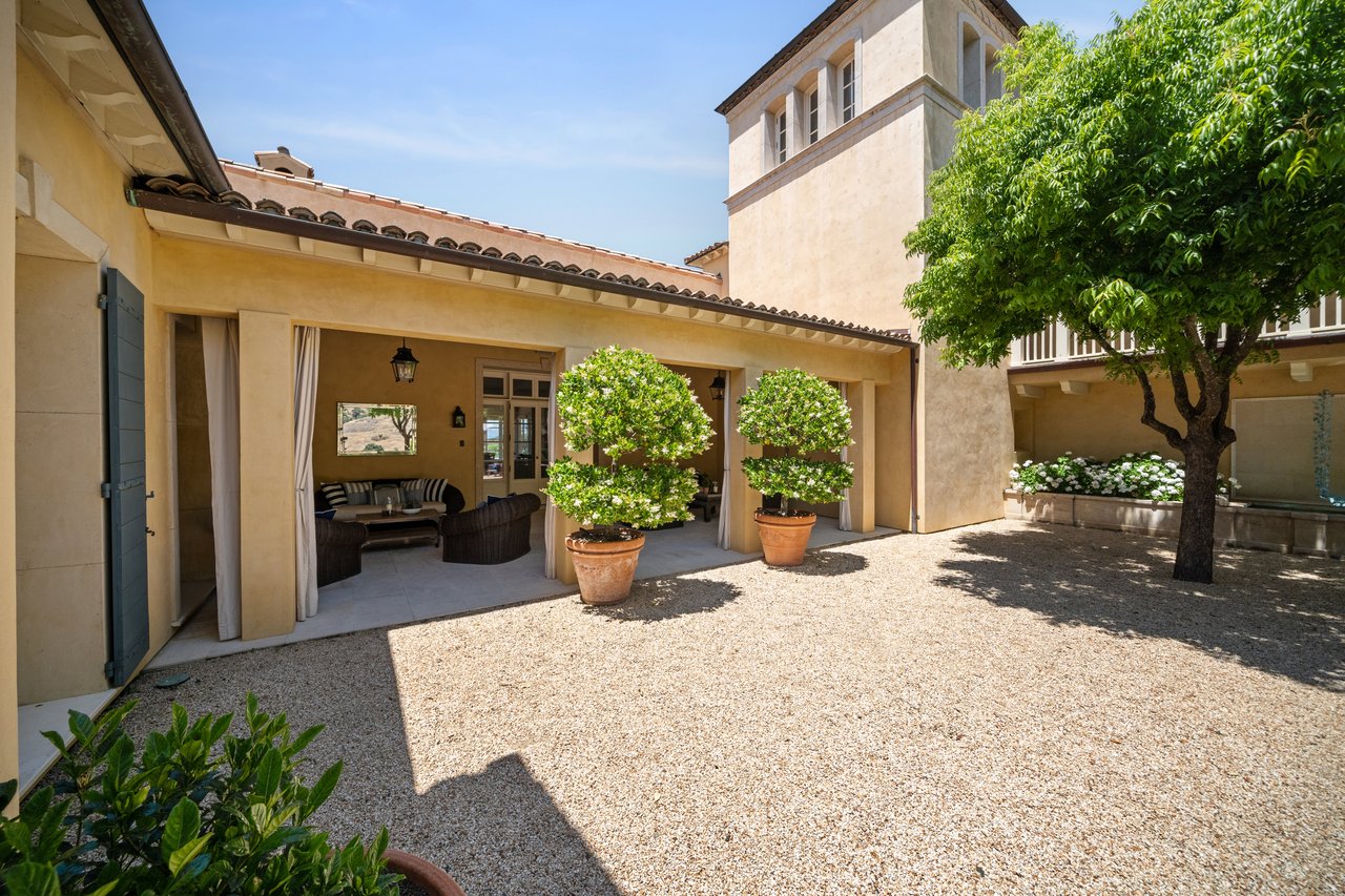 A crown jewel of Napa Valley’s renowned Stags Leap District, 4 Winds Winery is a 110± acre estate blending timeless elegance with modern luxury. Behind private gates along Silverado Trail, the property unfolds across rolling vineyards, manicured gardens, and serene natural beauty. The 8,681± sq ft main residence showcases exquisite craftsmanship, French doors, and light-filled living spaces that flow seamlessly through a library, formal dining room, and a chef’s kitchen designed for gatherings of any scale. The primary suite offers a private terrace, spa-inspired bath, and garden access, while en-suite guest rooms open directly to the pool. A separate 998± sq ft guest cottage and 1,500± sq ft caretaker home provide additional accommodations, complemented by a 1,400± sq ft wine cave ideal for private tastings. Outdoor living features a heated infinity pool with vineyard views, organic gardens, fruit orchards, and scenic trails. Additional amenities include a gym, meditation room, garages, and a curated collection of livestock. Offered fully furnished and turnkey, 4 Winds Winery embodies the ultimate Napa Valley lifestyle where sophistication, authenticity, and tranquility converge.