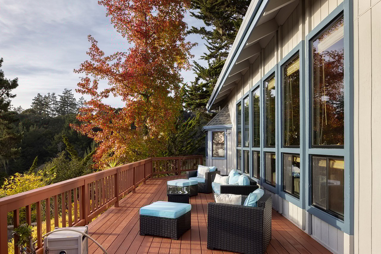 Experience the best of country living in Aptos with beautiful ocean views in this inviting coastal haven. Just minutes from local restaurants, markets, wineries, boutique shops, and the sandy shores of Rio Del Mar Beach, this property offers both quiet living and a convenient location. The roomy layout includes four bedrooms and four baths, complemented by vaulted ceilings that enhance the home’s bright, open feel. The lower-level primary suite offers its own office area. A carport provides covered parking, and a separate studio apartment adds flexibility for guests, rental opportunities, or creative space. Enjoy sunny days by your private pool, take in the scenery from the expansive ocean-view deck, and relax into the tranquil surroundings. 530 Quail Run Road offers a rare combination of ocean vistas, comfort, and an ideal location.