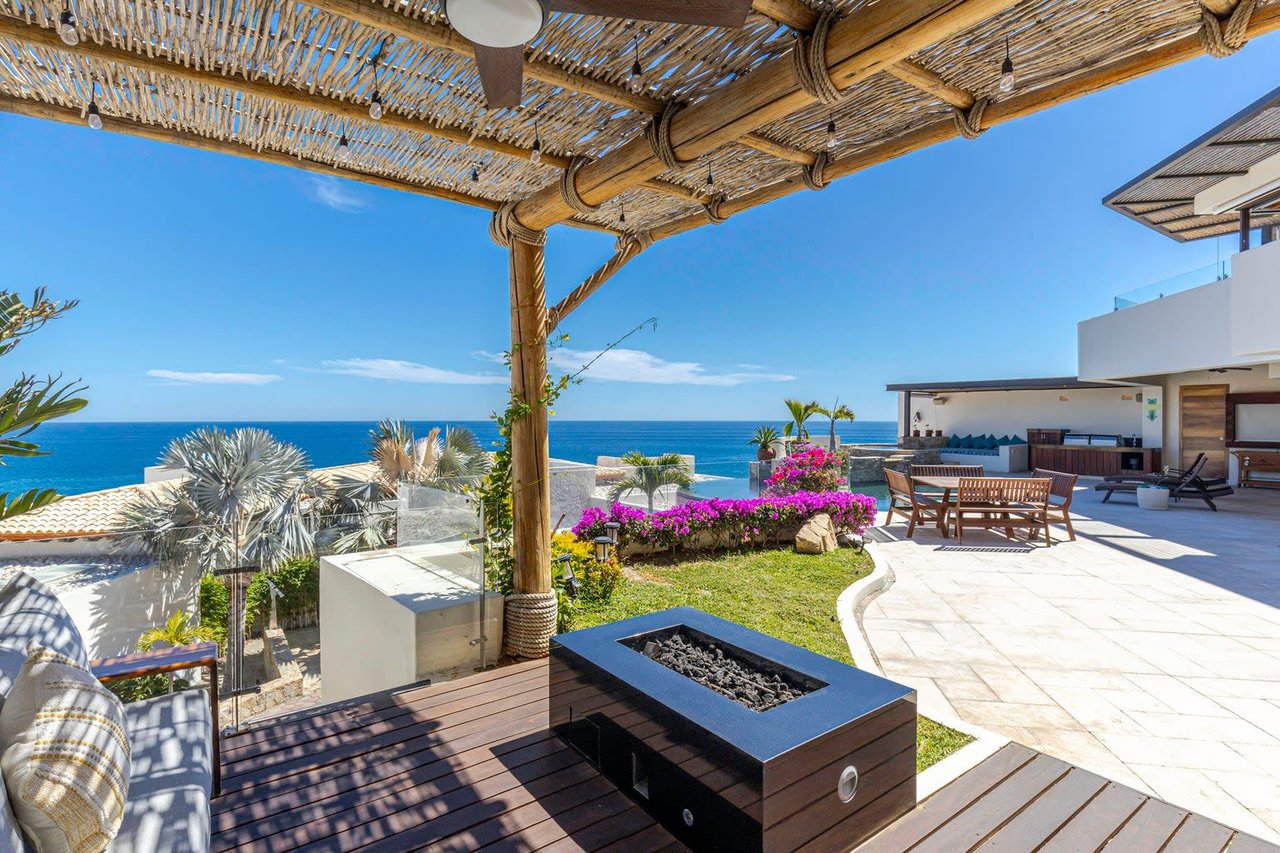 Discover the essence of luxury at Villa Serenity, a remarkable property nestled within the prestigious private community of Cabo Colorado, on the San Jose Corridor. This villa offers breathtaking ocean views, and also emerges as a prime vacation rental opportunity. Recently introduced to the vacation rental market, Villa Serenity is designed to accommodate up to 12 guests across its five bedrooms, 4 full baths and 3 half baths making it an ideal choice for large families, groups, or those seeking to invest in a high-yield rental property. With low Homeowners Association (HOA) fees, the potential for significant rental income is enhanced, making Villa Serenity an even more attractive investment. Just moments away from El Merkado, Palmilla, Querencia, and the historic downtown of San Jose, This villa is perfectly positioned for both relaxation and exploration. The outdoor space features a fireplace with a cozy sitting area, dining space, BBQ, pool, and hot tub. Carved into the hillside, Serenity's architecture is a masterpiece of contemporary design, with sliding glass doors allowing for panoramic views from nearly every angle. This home is a haven of privacy. The semi private swimmable beach is just a few steps away.