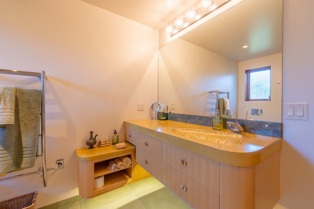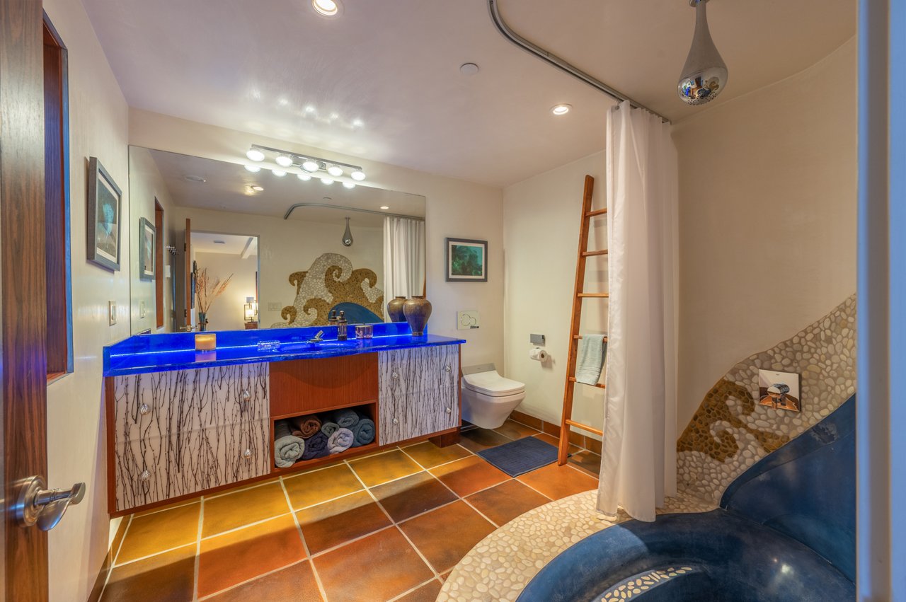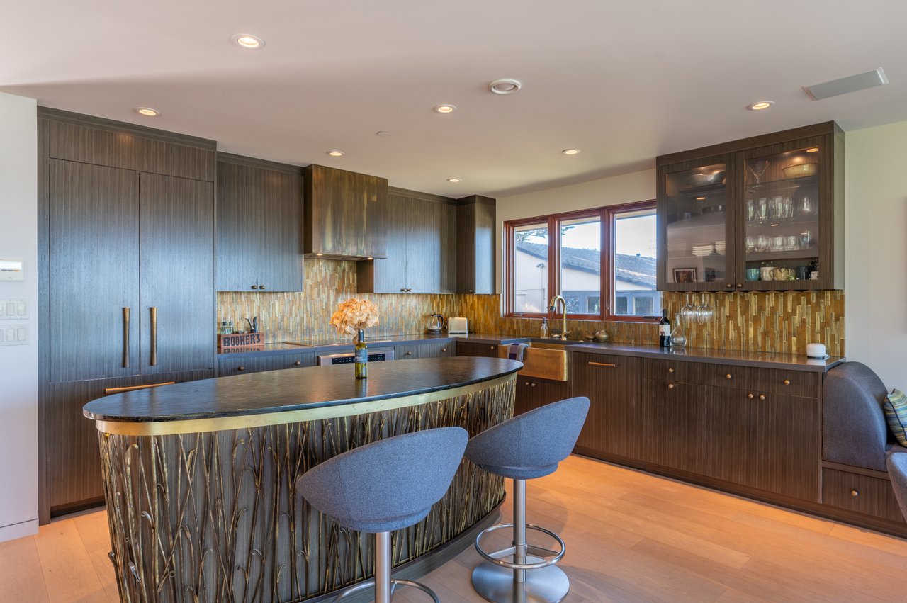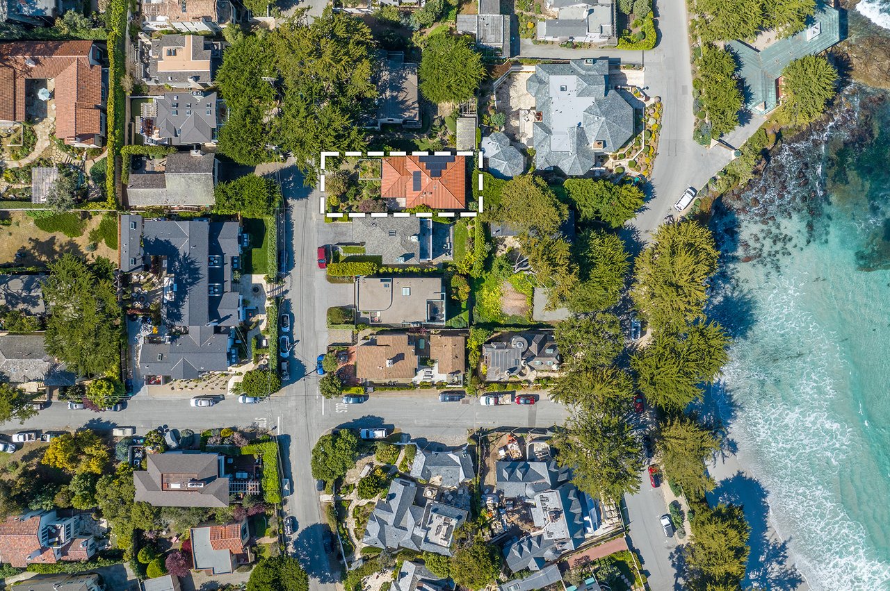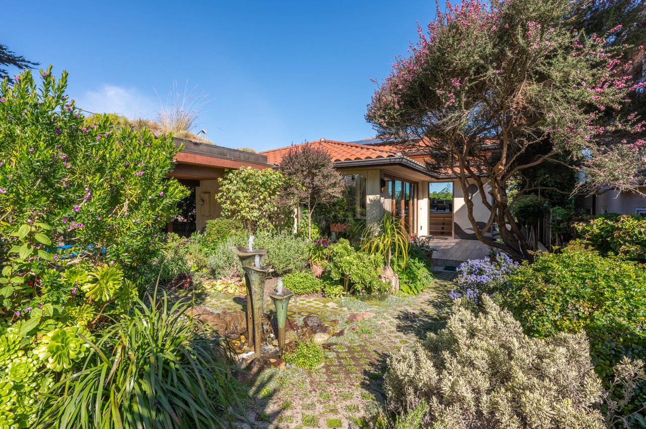 Located on coveted Carmel Point, just one block from both of Carmel’s world-famous beaches, this beautifully remodeled Green Point Rated luxury rental has gorgeous views stretching from Carmel Bay to Pebble Beach and is a Net Zero Energy home with carbon-neutral and sustainable features. Huge windows bring the outdoors inside with the living room area boasting fabulous sand and whitewater views. Other highlights include 3 bedrooms, 3 bathrooms, a custom metal and glass front door, indoor living wall designed with plants in different textures, shapes and colors to highlight the spiral pattern complementing the wave motif on the front door, a well-appointed kitchen, natural wine cellar, and custom metalwork throughout.