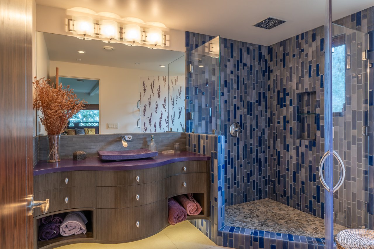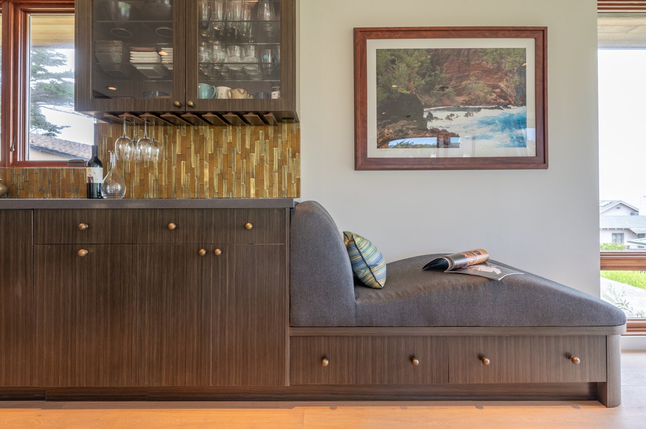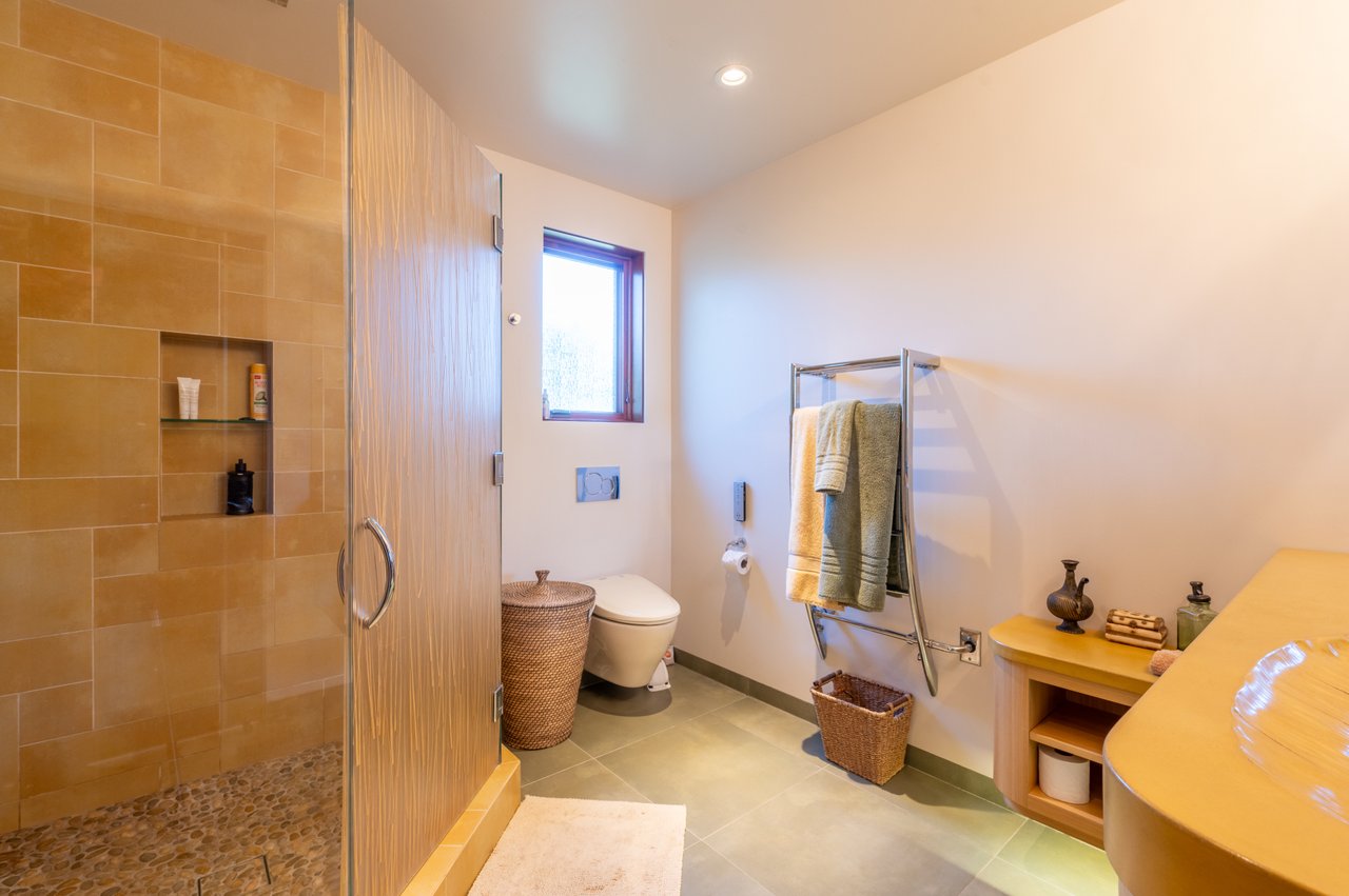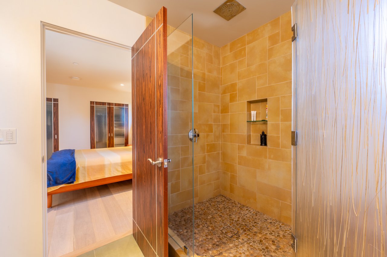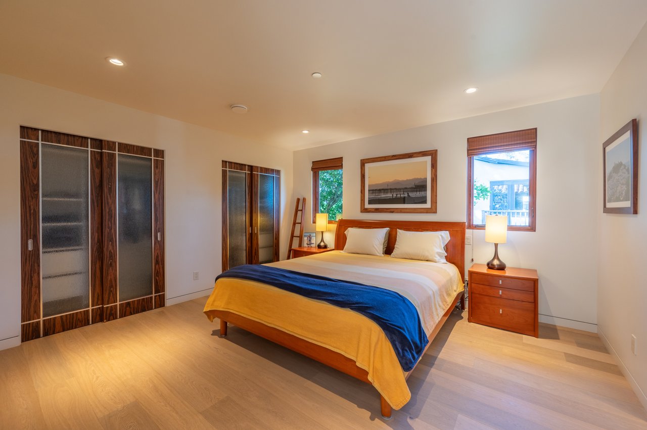 Located on coveted Carmel Point, just one block from both of Carmel’s world-famous beaches, this beautifully remodeled Green Point Rated luxury rental has gorgeous views stretching from Carmel Bay to Pebble Beach and is a Net Zero Energy home with carbon-neutral and sustainable features. Huge windows bring the outdoors inside with the living room area boasting fabulous sand and whitewater views. Other highlights include 3 bedrooms, 3 bathrooms, a custom metal and glass front door, indoor living wall designed with plants in different textures, shapes and colors to highlight the spiral pattern complementing the wave motif on the front door, a well-appointed kitchen, natural wine cellar, and custom metalwork throughout.