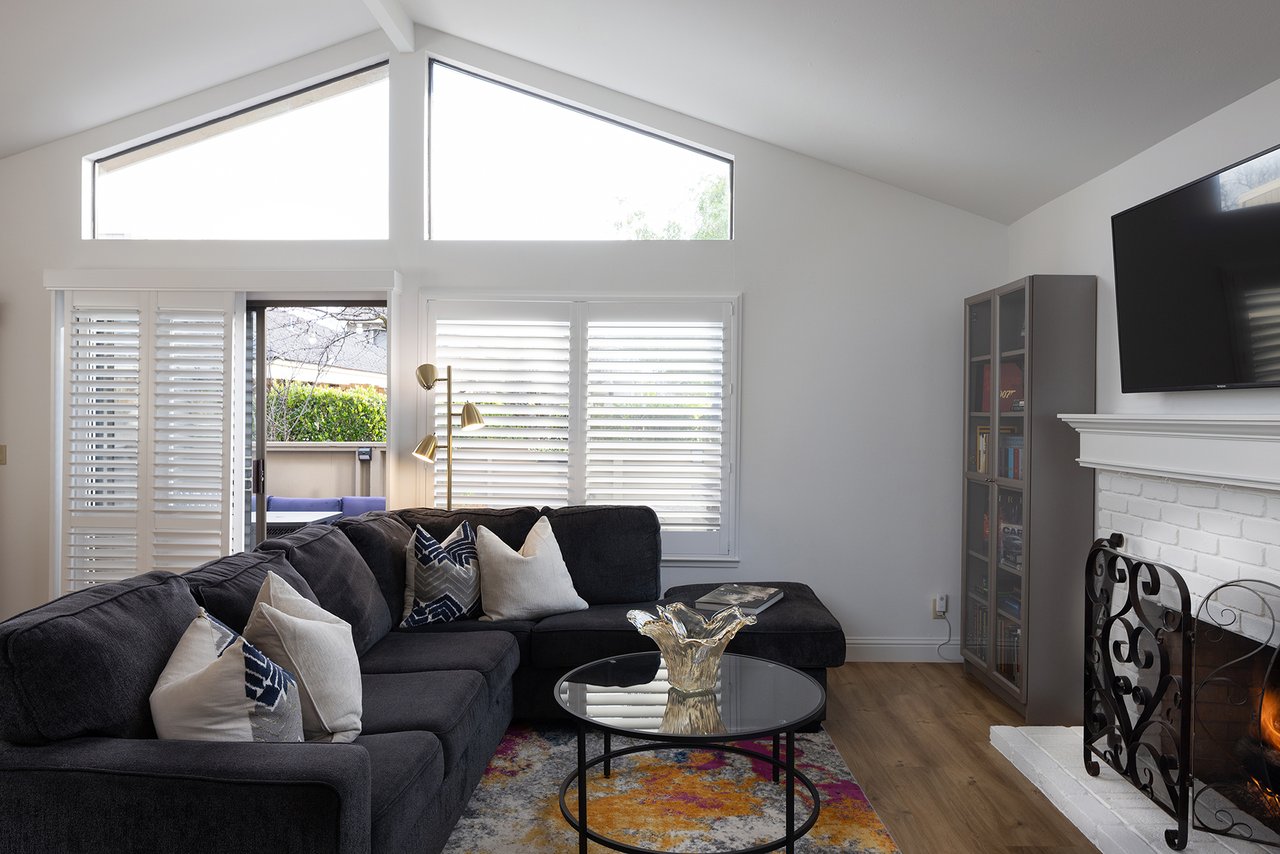 Tucked away in a desirable Carmel enclave, this refined single-level residence offers an exceptional blend of privacy, comfort, and coastal elegance. One of only eight single-story homes in the community, the residence features an open, light-filled floor plan highlighted by soaring vaulted ceilings and thoughtfully curated upgrades. The inviting living space centers around a gas log fireplace, creating a warm yet sophisticated ambiance. Two well-appointed bedrooms are complemented by a versatile den—ideal for a private office, library, or guest retreat. Wood laminate flooring, upgraded electrical, and an indoor laundry room enhance everyday living. Three private exterior decks and patios provide seamless indoor-outdoor flow, perfect for morning coffee or evening entertaining. An attached two-car garage with EV charger adds convenience. Just moments from Crossroads, the Barnyard, and Carmel Rancho, this home captures the essence of effortless Carmel living—peaceful, polished, and perfectly positioned.