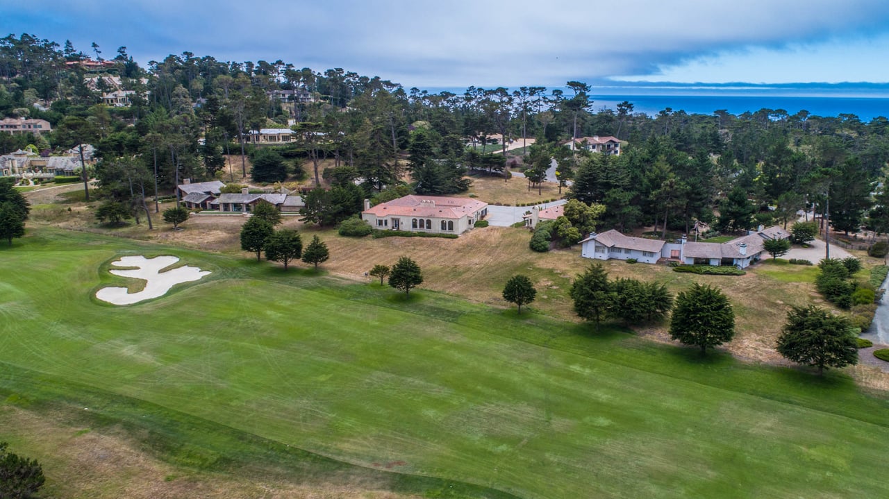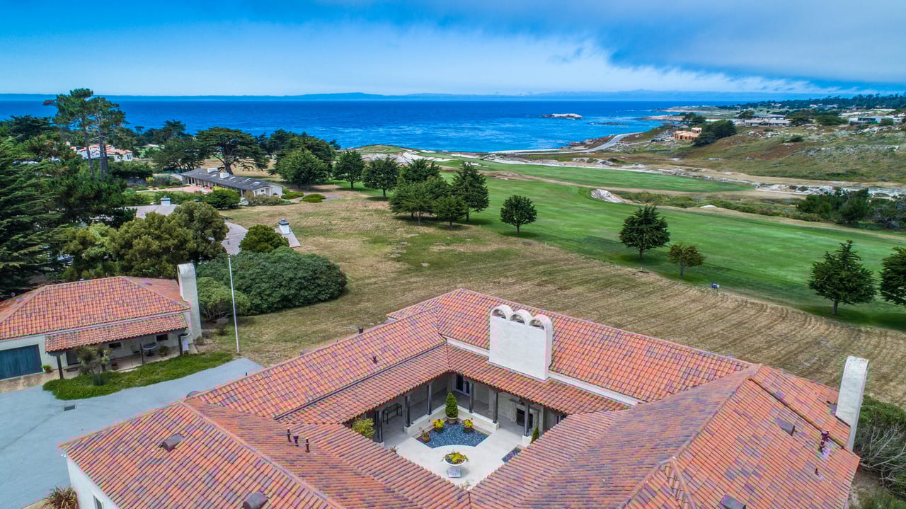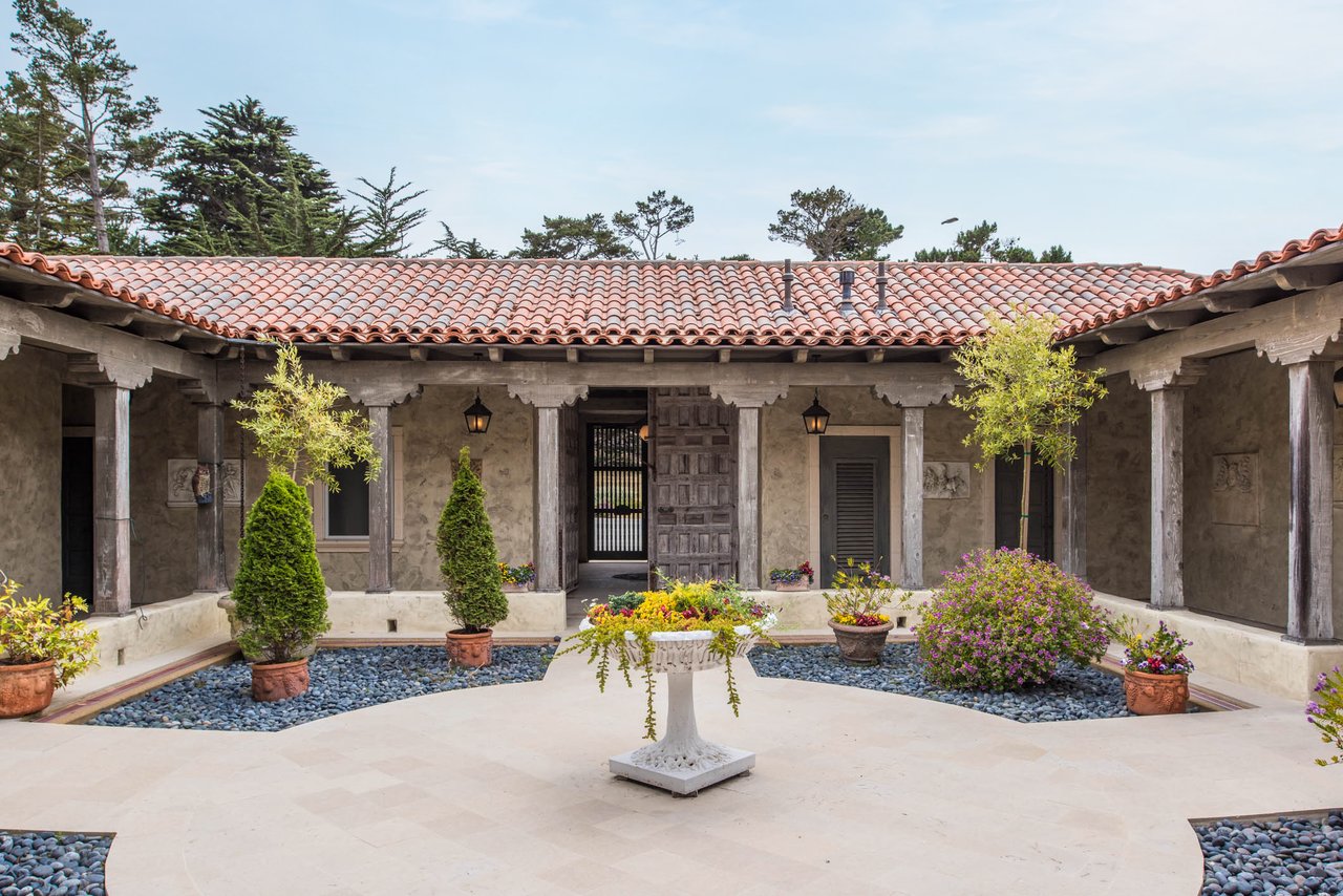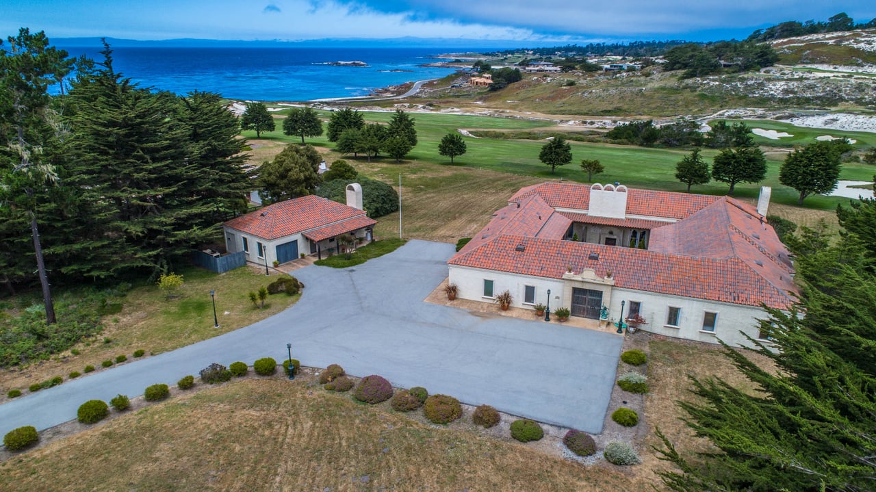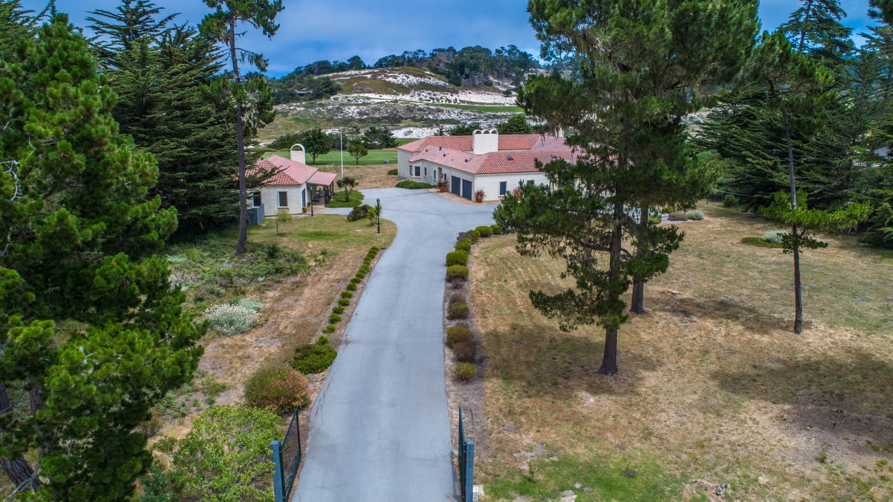 Porque Lane is a warm and welcoming single-level home in the heart of Pebble Beach located on Cypress Point Club, blending comfort with a quiet sense of luxury. The main residence offers three spacious ensuite bedrooms, along with a private guest house that’s perfect for hosting family or friends while still maintaining a sense of separation. Inside, the home feels both relaxed and refined, with inviting living spaces, a cozy library, and both casual and formal dining areas that make it easy to gather or unwind at your own pace. At the center of it all, a beautiful open-air limestone courtyard with a fireplace creates a natural place to relax and enjoy the indoor-outdoor lifestyle, while the surrounding outdoor seating and manicured front lawn add to the peaceful setting. It’s a home that feels easy to settle into, yet special enough to remember.
