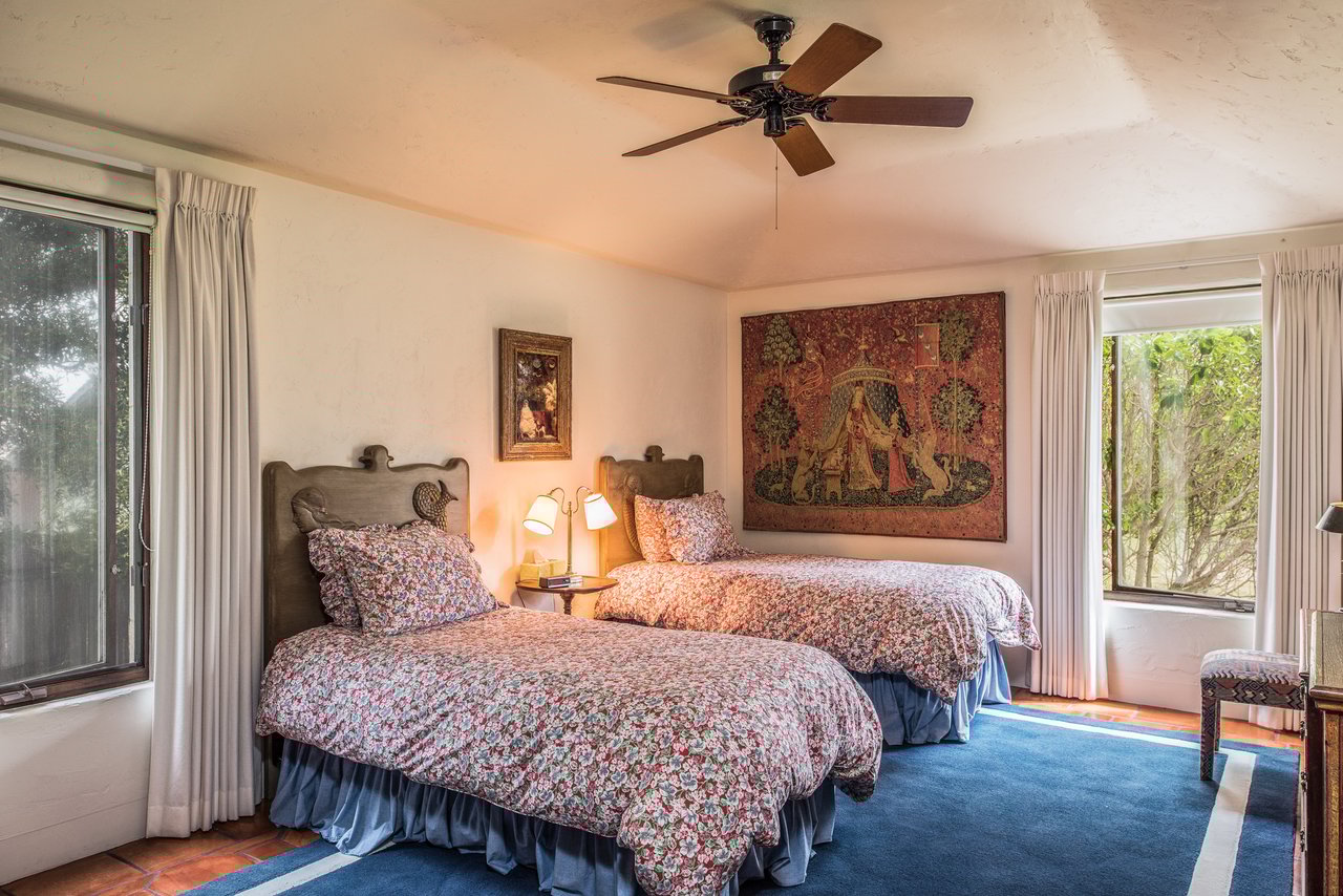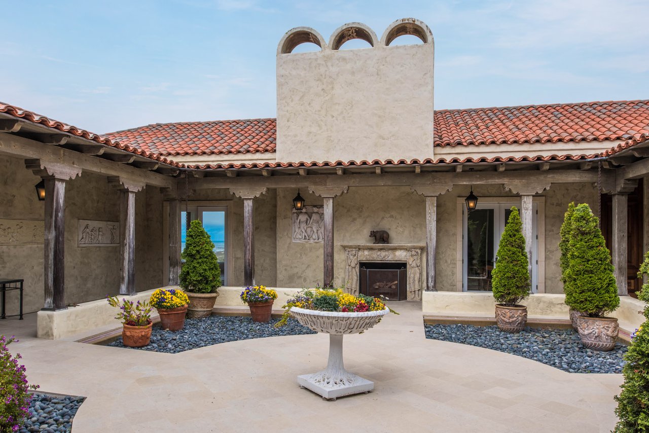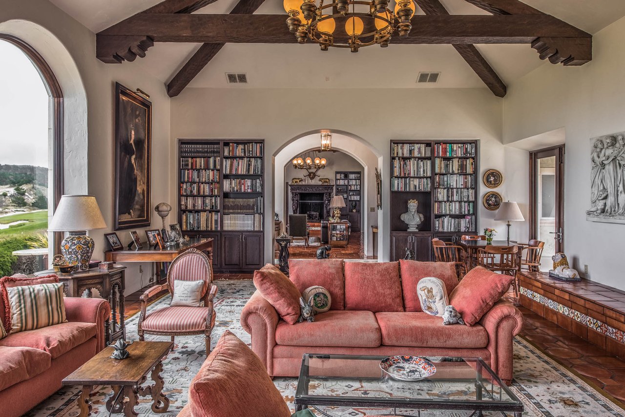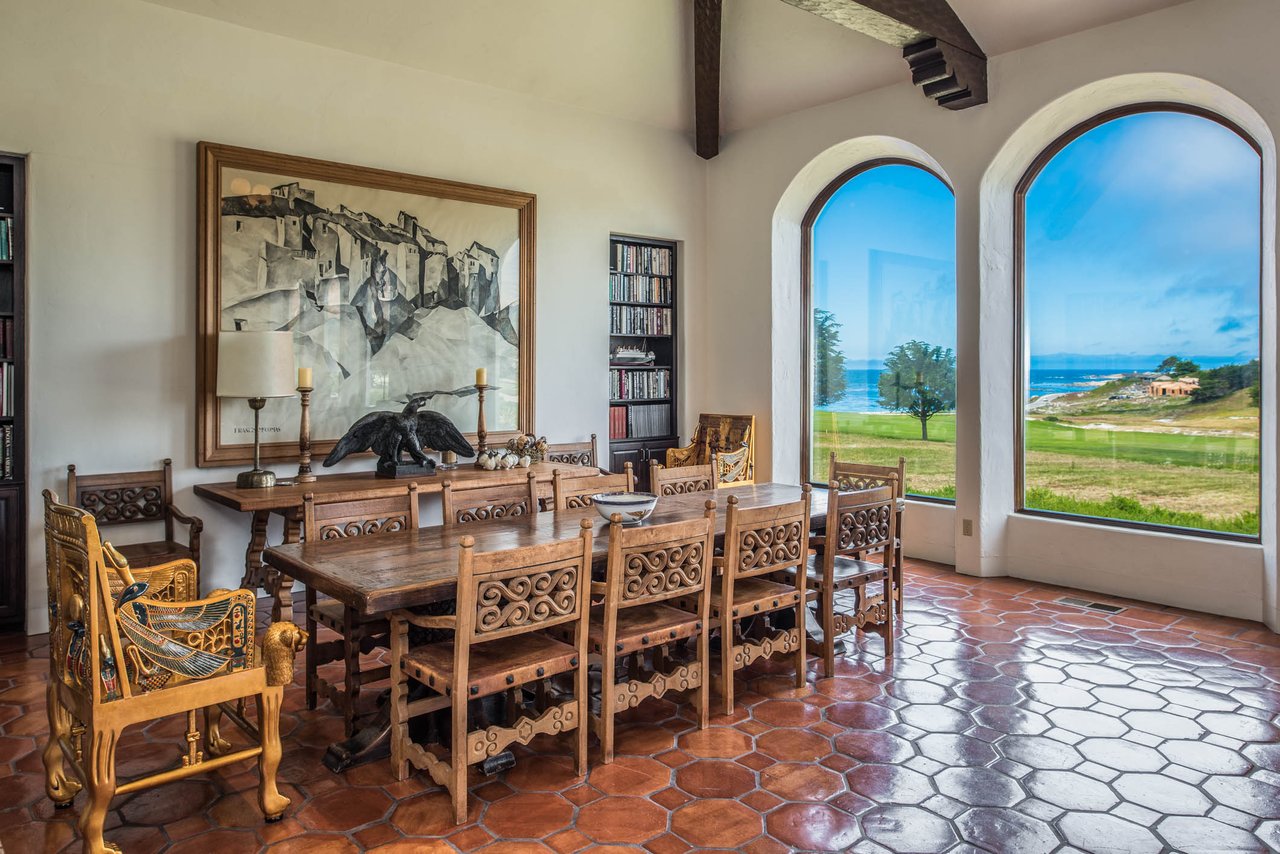 Porque Lane is a warm and welcoming single-level home in the heart of Pebble Beach located on Cypress Point Club, blending comfort with a quiet sense of luxury. The main residence offers three spacious ensuite bedrooms, along with a private guest house that’s perfect for hosting family or friends while still maintaining a sense of separation. Inside, the home feels both relaxed and refined, with inviting living spaces, a cozy library, and both casual and formal dining areas that make it easy to gather or unwind at your own pace. At the center of it all, a beautiful open-air limestone courtyard with a fireplace creates a natural place to relax and enjoy the indoor-outdoor lifestyle, while the surrounding outdoor seating and manicured front lawn add to the peaceful setting. It’s a home that feels easy to settle into, yet special enough to remember.