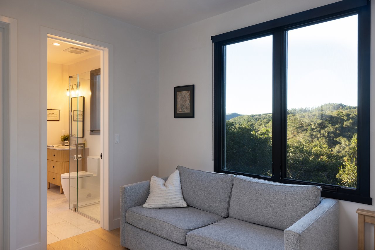 Set within Clint Eastwood’s Tehama community in Carmel, 71 Este Canada spans 12.32 acres inside one of California’s most private and intentionally preserved residential environments. Completed in 2025 and oriented toward uninterrupted ranch land views, the estate is conceived as a modern family compound designed for privacy, longevity, and operational independence.The property totals approximately 4,925 square feet across a main residence, ADU, JADU, and a reimagined barn with guest accommodations and dedicated office and conference space. The main house is defined by scale and light, featuring vaulted wood ceilings, skylights, custom plaster walls, radiant heated hardwood and tile floors, and a stone clad fireplace. The upper level primary suite offers private deck access, spa caliber bath, and walk in closet, while three additional bedrooms and two offices support both daily living and serious work.The ADU functions as a fully independent residence with open kitchen, fireplace, wine storage, outdoor shower, and expansive upper deck. Solar power, dual battery backups, metal roofing, and stone and stucco exteriors reinforce durability and long term relevance. With five garage spaces and access to Tehama’s limited 90 homesites across nearly 2,000 acres, 71 Este Canada represents a generational asset built with intention.