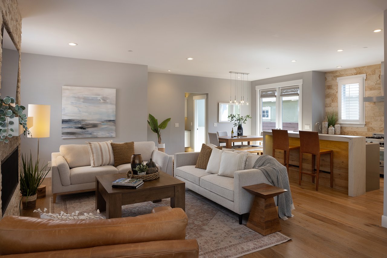 Beautifully reimagined Carmel-by-the-Sea home just moments from downtown, thoughtfully remodeled by Lewis Builders with high-end finishes and timeless design throughout. This 3 bedroom, 2.5 bathroom residence offers ~1,850 sq ft of light-filled living space, featuring an open floor plan, 10-foot ceilings, and wide plank oak flooring.