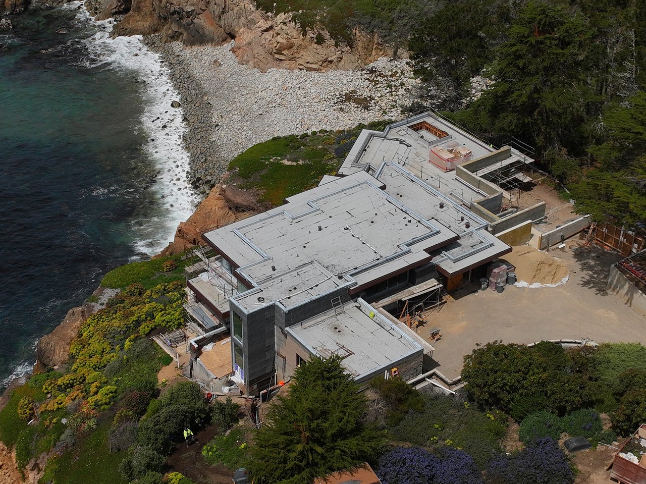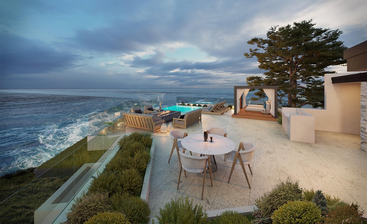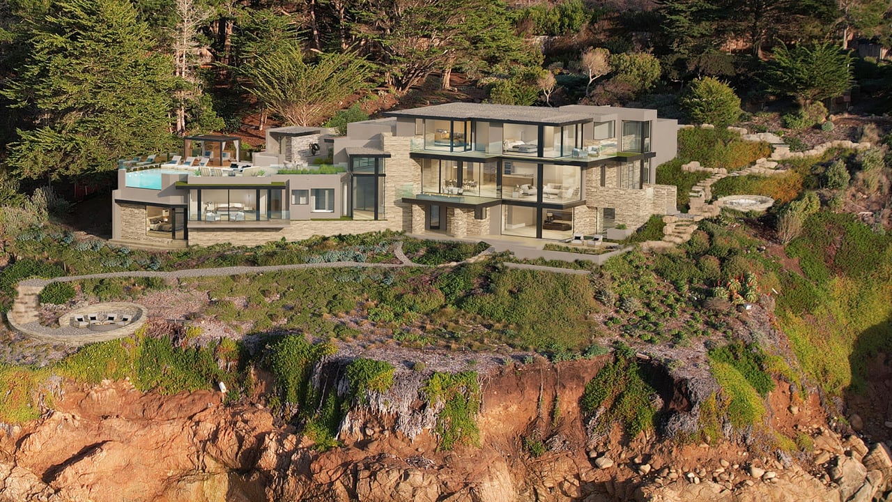 Located just a short drive from Pebble Beach and Carmel-by-the-Sea, “Seadance” is an extraordinary oceanfront contemporary residence currently under construction in the exclusive gated community of Otter Cove. Set on over 1.5 acres with private beach access, this ~8,430 SqFt masterpiece offers panoramic views of the dramatic coastline, sandy beaches, and Grand Pacific beyond. A striking glass entry framed in stone and a living roof lead to a central stair gallery flooded with natural light. The open-concept main level includes a gourmet kitchen, dining area, and great room that extend to ocean-facing terraces. The lower level features two ocean-view primary suites, a guest suite, media room, gym, and laundry. Two upper-level rooms boast private terraces with sweeping ocean vistas. The upper level deck features outdoor living amenities and a luxurious spa that overlooks Wildcat Cove. Designed for elevated coastal living, the home includes radiant floor heating, zoned A/C, and full home automation. A rare opportunity to own a design-forward, beachfront retreat in one of California’s most scenic enclaves.
