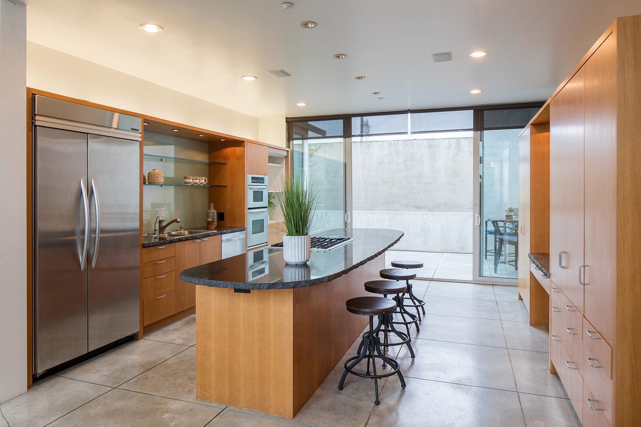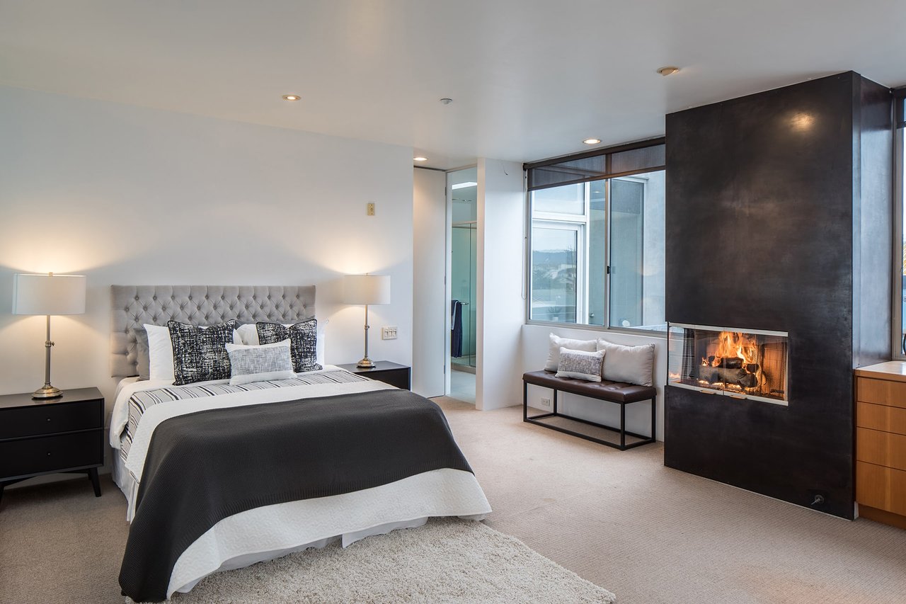 Featured in Architectural Digest and Dwell Magazine, this Jerrold E. Lomax, FAIA residential condo’s striking industrial-chic design has been an iconic sight in Sand City since its construction in 2004. A bold, modernist statement with walls of glass, corrugated steel, and saw-cut concrete, the building’s two-story residence features 20-foot high glass walls facing north, providing perfect sun control and privacy, with ample natural light throughout. The main floor’s indoor-outdoor open living space flows effortlessly between the custom kitchen, open living/dining area, and guest quarters, outlining the signature minimalistic yet functional space that Lomax is so adept in creating. The master suite has a spa-like feel featuring a fireplace, soaking tub, and a spacious closet with built-in laundry and sink. There is an additional space, perfect for a home office, family room, or gym, off of the master suite and open to the first floor below. Lomax’s partnership with artist Gregory Hawthorne and Bill McLeod, who constructed the famed Post Ranch Inn in Big Sur, helped create the unassumingly elegant box’s quality. With two terraces on the main floor, there is plenty of room for entertaining guests or hosting family gatherings. Just minutes from all the outdoor activities and world-class dining and shopping the Monterey Peninsula has to offer, this modernist masterpiece is the last remaining creation of Jerry Lomax available and ready for the new owners to enjoy.