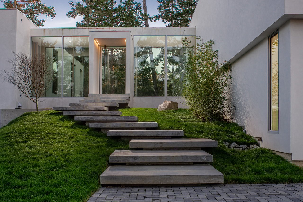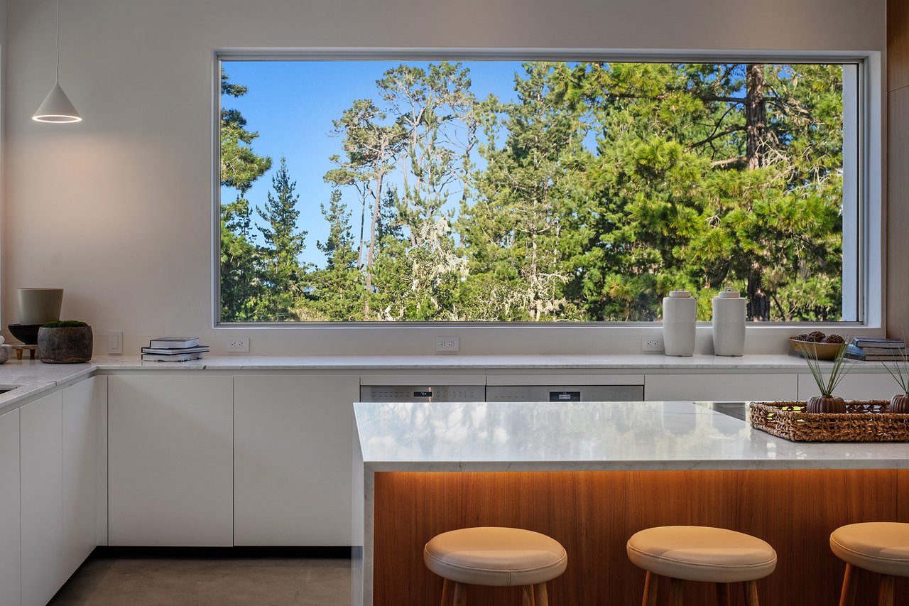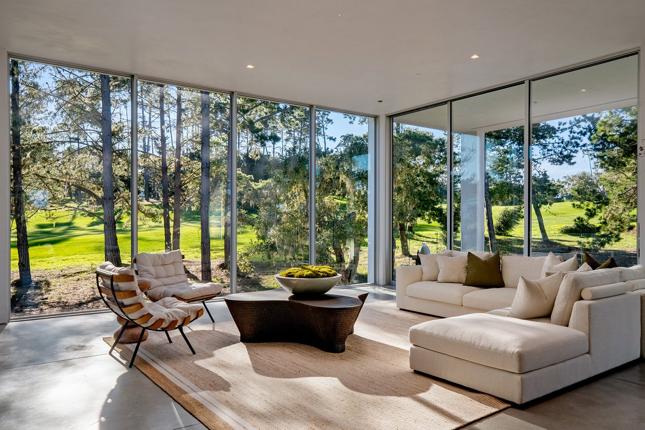 With sweeping views of Spyglass Hill’s 11th fairway and filtered ocean vistas, the Waterbridge House is an extraordinary estate thoughtfully designed with Scandinavian-Japanese minimalism. This newly constructed compound is comprised of the stunning main house, a private ADU, and a Tea House (Guest House) floating on water. The architecturally significant estate embraces clean lines, symmetry, and intentional simplicity, blending timeless natural elements with modern form. Two architectural axes—interior and exterior—guide you through spaces that reveal and conceal, including the “Waterbridge,” a glazed walkway over a tranquil pond. The sculptural “Cloud Steps” lead to a light-filled interior where polished concrete floors, Western floor-to-ceiling windows, Italian concealed Infinity doors, and Poliform cabinetry define quiet luxury. Sustainability meets sophistication with triple-glazed windows, an airtight façade, radiant heat, and an automated energy recovery system. From Sub-Zero, Wolf, and Miele appliances to Italian Flos lighting and Simply White plaster walls, every detail reflects enduring craftsmanship and environmental mindfulness. Located in the heart of Pebble Beach near The Lodge and by the Spyglass Club House, Waterbridge House is a half mile to the beach and just a short drive from all the wonderful amenities of Carmel, Big Sur, and the entire Monterey Peninsula. This Pebble Beach masterpiece is ready to welcome home its fortunate new owners.
